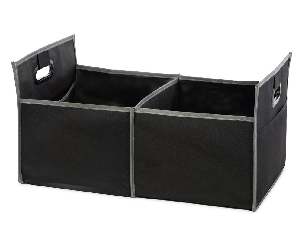 Органайзер для багажника помогает содержать в чистоте автомобиль и аккуратно складывается для хранения во время его неиспользования. Имеет два наружных кармана для дополнительных вещей и два внутренних отделения. Ручки с мягкими подкладками для удобной переноски.