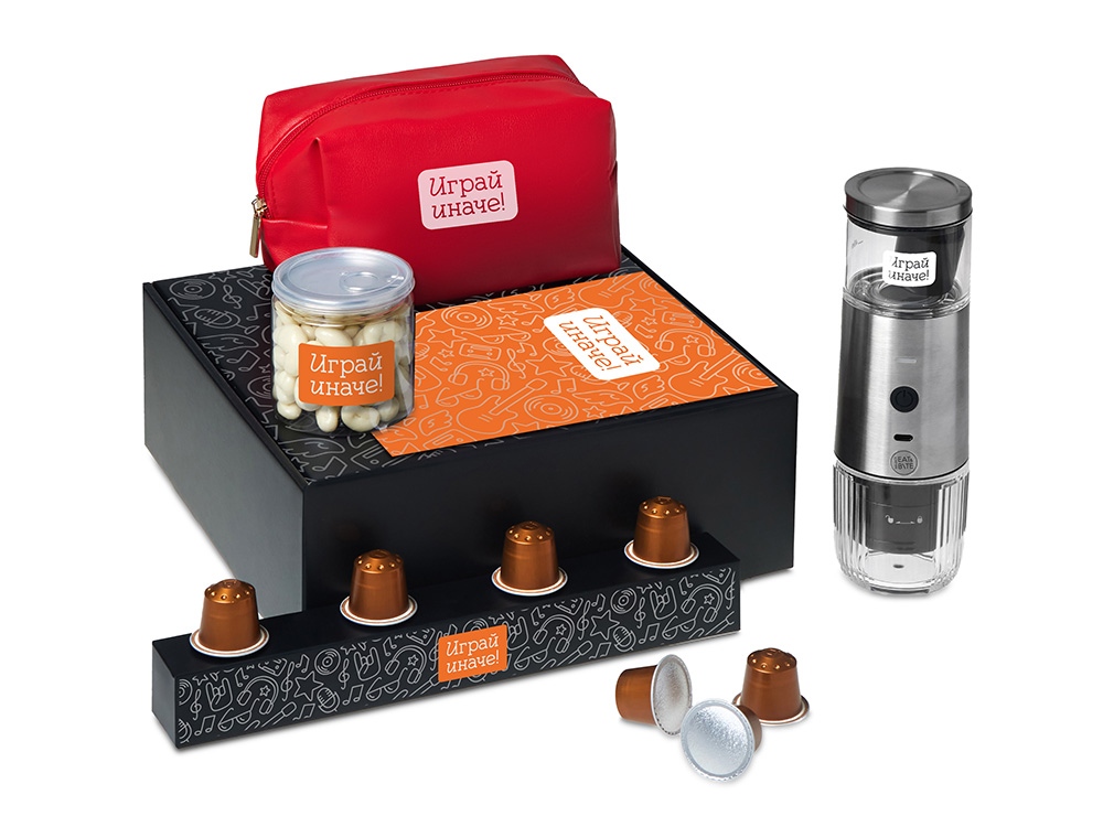 Набор Re:y. Boost о бодрости, энергии и маленьких ритуалах, которые можно взять с собой. Портативная кофемашина и кофе в капсулах позволяют приготовить ароматный напиток дома, в офисе или на прогулке. Кешью в глазури добавляет сладкую нотку, а косметичка позволяет взять любимые вещи с собой, куда бы вы ни отправились.. Этот набор превращает привычный утренний ритуал в момент бодрости и комфорта, где бы вы ни были.