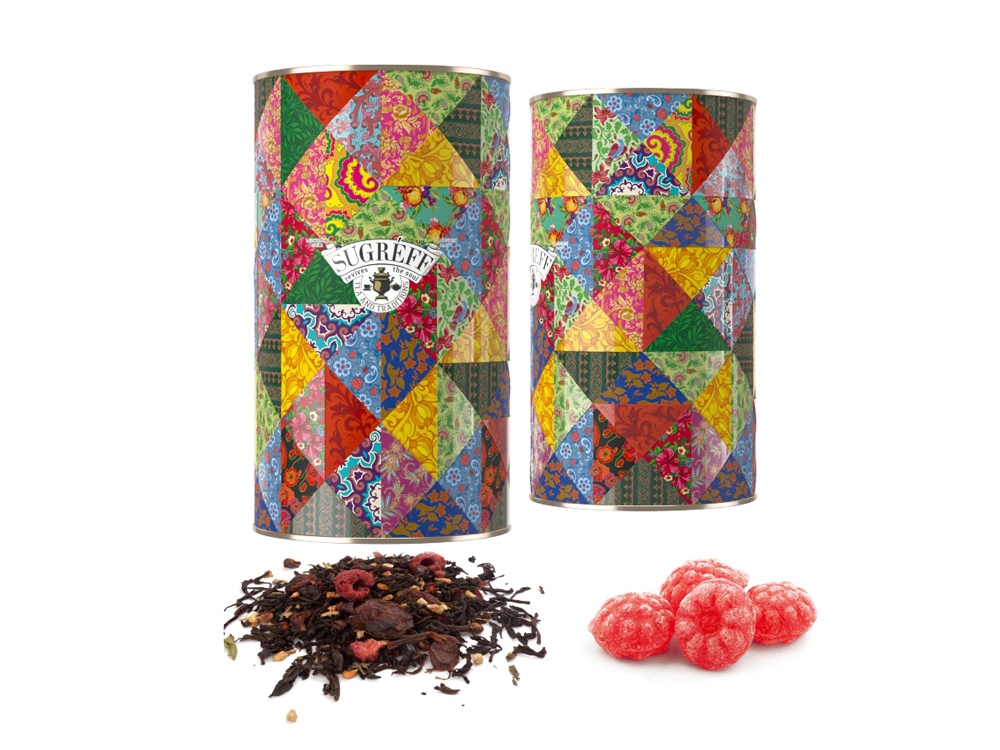 Подарочный набор с черным чаем и малиновыми леденцами в тубусе