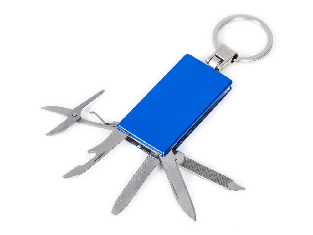 Брелок-мультитул на кольце в металлическом корпусе с заметным полем под нанесение.