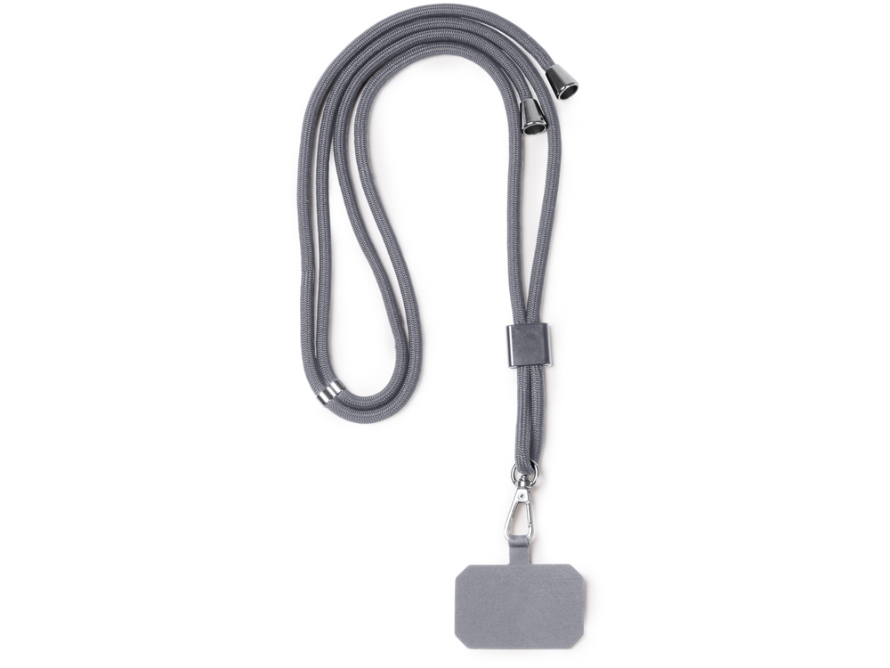 Держатель для мобильного телефона на шнурке из переработанного полиэстера RPET. Регулируемый ремешок, в комплект входит карабин.