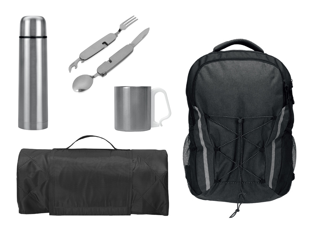 Набор туриста с термосом, кружкой, столовыми приборами и пледом