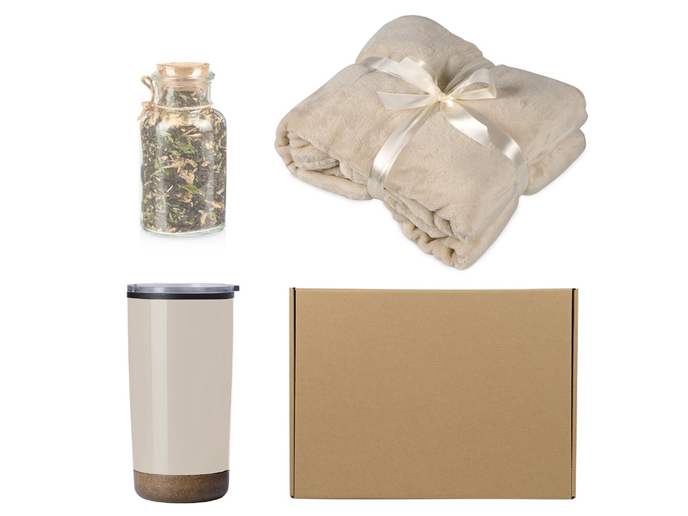 Подарочный набор с пледом, термокружкой и чаем