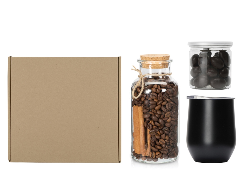 Подарочный набор с термокружкой, кофе и миндалем в шоколаде