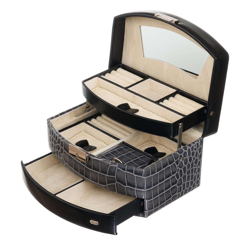 Практичная и вместительная шкатулка P6033 обеспечивает аккуратную организацию ваших украшений: шкатулка оснащена удобными отсеками для бережного и комфортного хранения колец, цепочек, кулонов и подвесок.