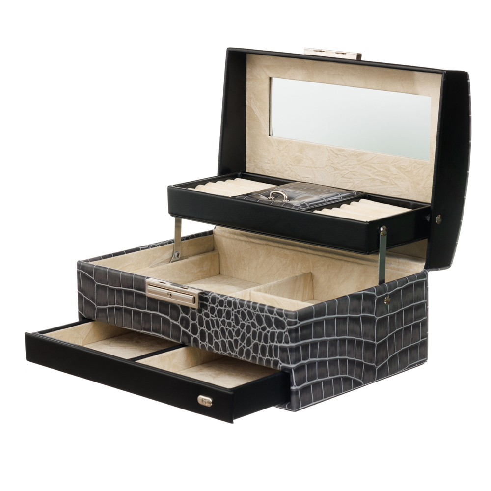 Шкатулка для украшений Jardin D'Ete, цвет антрацит, "рептилия", 24,8 х 16 х 12,5 см