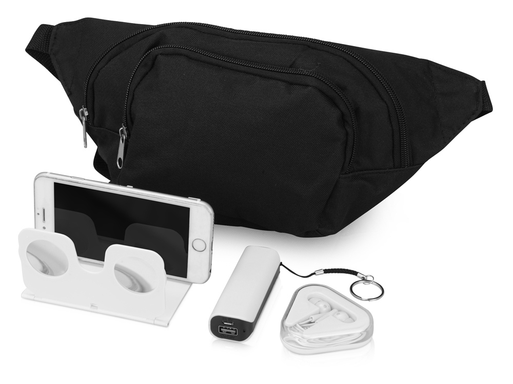 Хотите посмотреть 3D фильм в дороге? Набор Virtuality поможет с этим. Благодаря 3D очкам вы можете смотреть фильм прямо с экрана мобильного устройства, а благодаря наушникам посторонние звуки не будут вас отвлекать. С зарядным устройством Basis не нужно переживать о том, что ваш смартфон разрядится в дороге. Все предметы сложены в удобную поясную сумку. Внимание! В набор не входят провода для зарядного устройства.