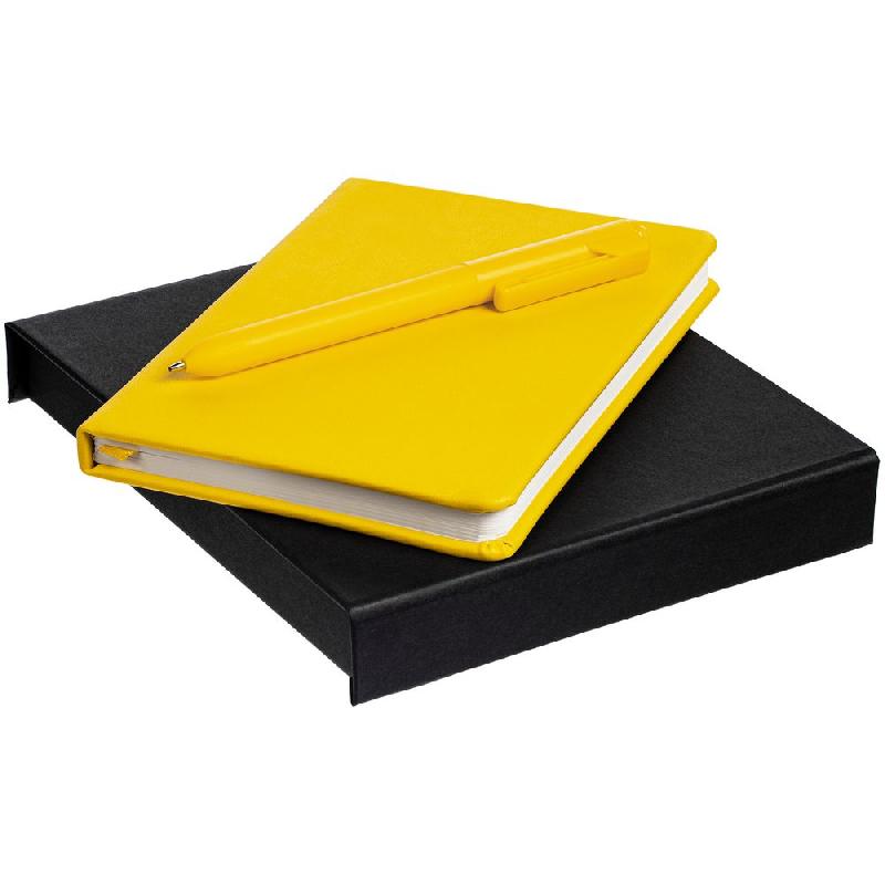 блокнот - искусственная кожа; ручка - пластик; коробка - переплетный картон