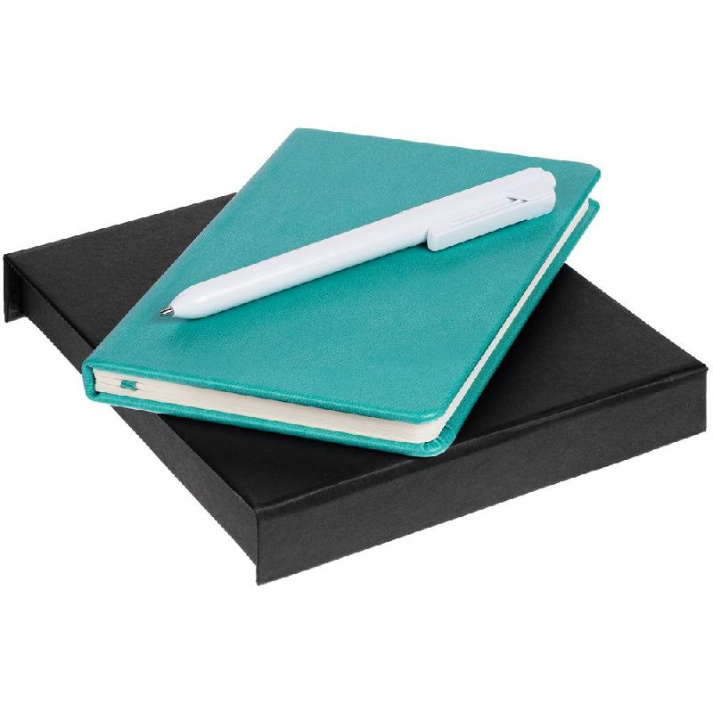 блокнот - искусственная кожа; ручка - пластик; коробка - переплетный картон