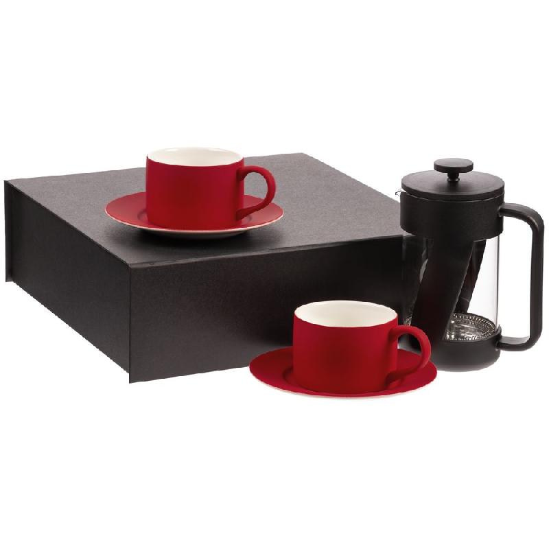 френч-пресс: высота 18 см, диаметр 9 см, ширина с ручкой 13 см; чашка: диаметр 8,5 см, высота 6 см, ширина с ручкой 11,6 см; блюдце: 15,5x1 см; коробка 31х30,5х10,5 см