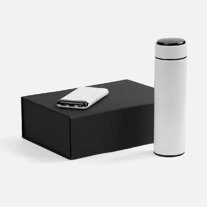 аккумулятор - пластик; смарт-бутылка - нержавеющая сталь, 304 внутри, 201 снаружи; коробка - переплетный картон