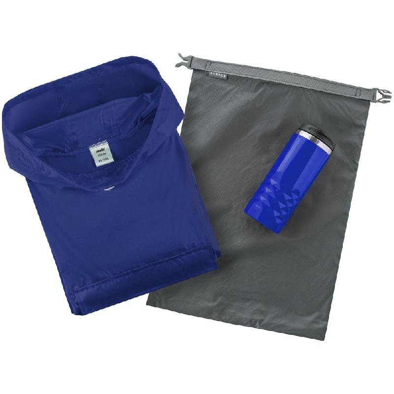 мешок - нейлон, рипстоп; дождевик - полиэстер; термостакан - пластик, нержавеющая сталь
