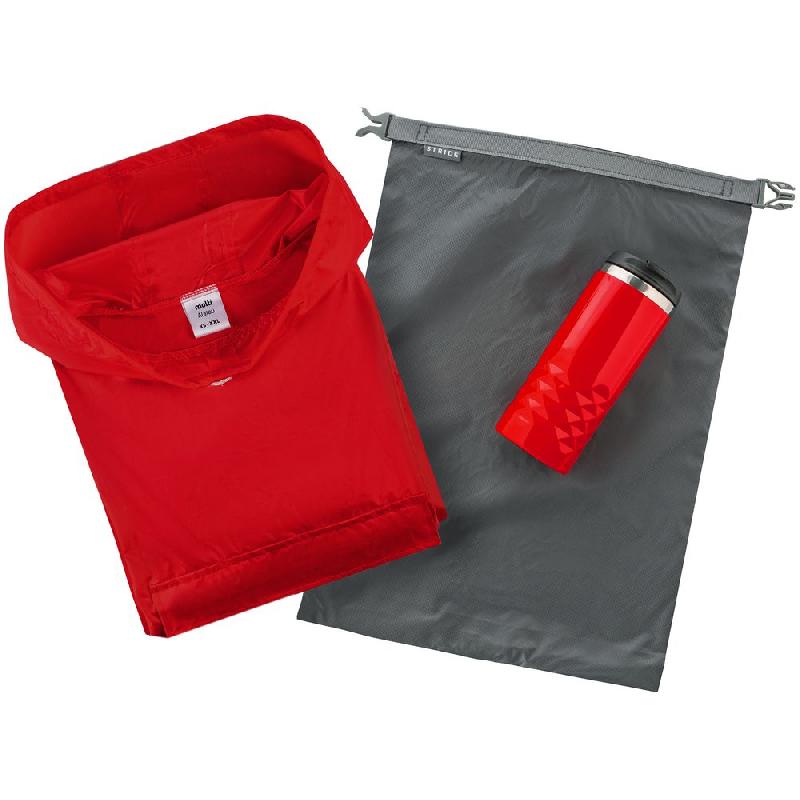 мешок - нейлон, рипстоп; дождевик - полиэстер; термостакан - пластик, нержавеющая сталь