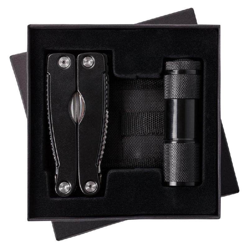фонарик - алюминий; мультитул: инструменты - нержавеющая сталь; рукоятки - алюминий; чехол - полиэстер; коробка - картон