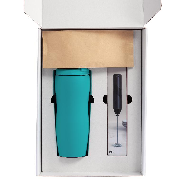 Набор, который станет приятным подарком для всех любителей кофе: зерновой кофе, термостакан и капучинатор для молока, чтобы ваш напиток получился с пенкой!