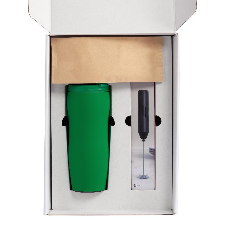 Набор, который станет приятным подарком для всех любителей кофе: зерновой кофе, термостакан и капучинатор для молока, чтобы ваш напиток получился с пенкой!