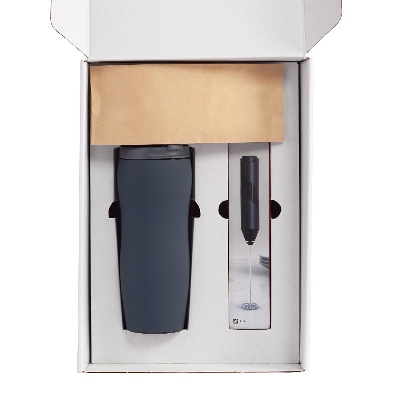 Набор, который станет приятным подарком для всех любителей кофе: зерновой кофе, термостакан и капучинатор для молока, чтобы ваш напиток получился с пенкой!