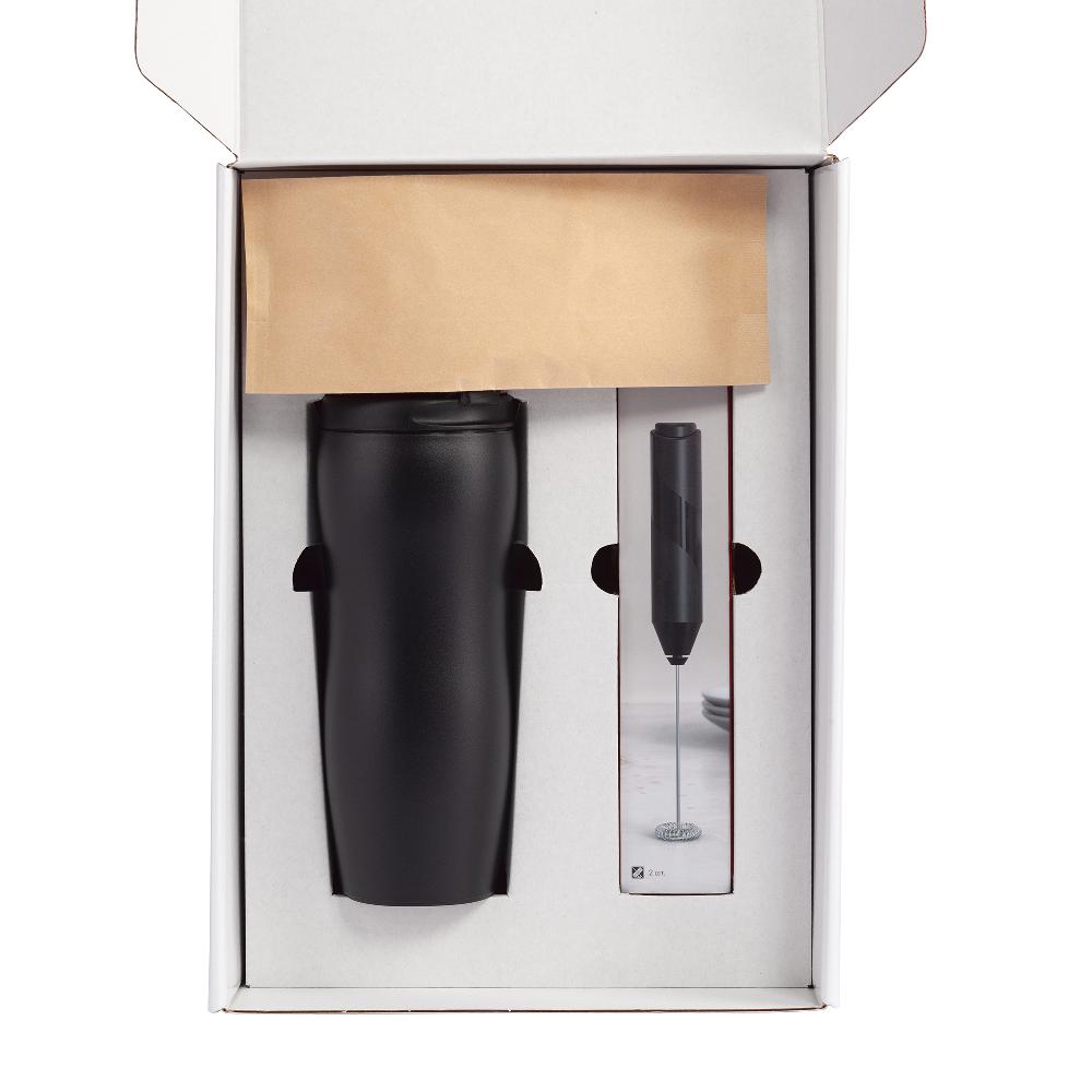 Набор, который станет приятным подарком для всех любителей кофе: зерновой кофе, термостакан и капучинатор для молока, чтобы ваш напиток получился с пенкой!