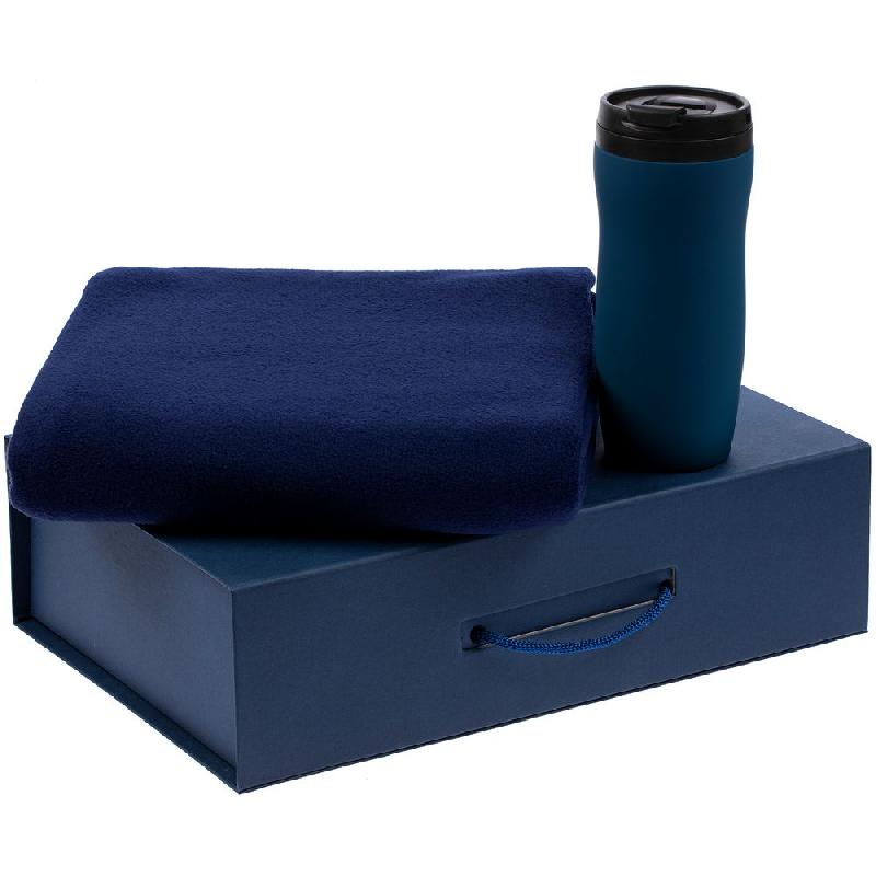 крышка, внутренняя колба - пластик; корпус - нержавеющая сталь; покрытие софт-тач; плед - флис, плотность 180 г/м²; коробка - переплетный картон; наполнитель - бумага