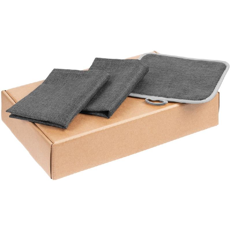 салфетка - полиэстер 100%; прихватка - полиэстер 100%; коробка - микрогофрокартон, плотность 385 г/м²