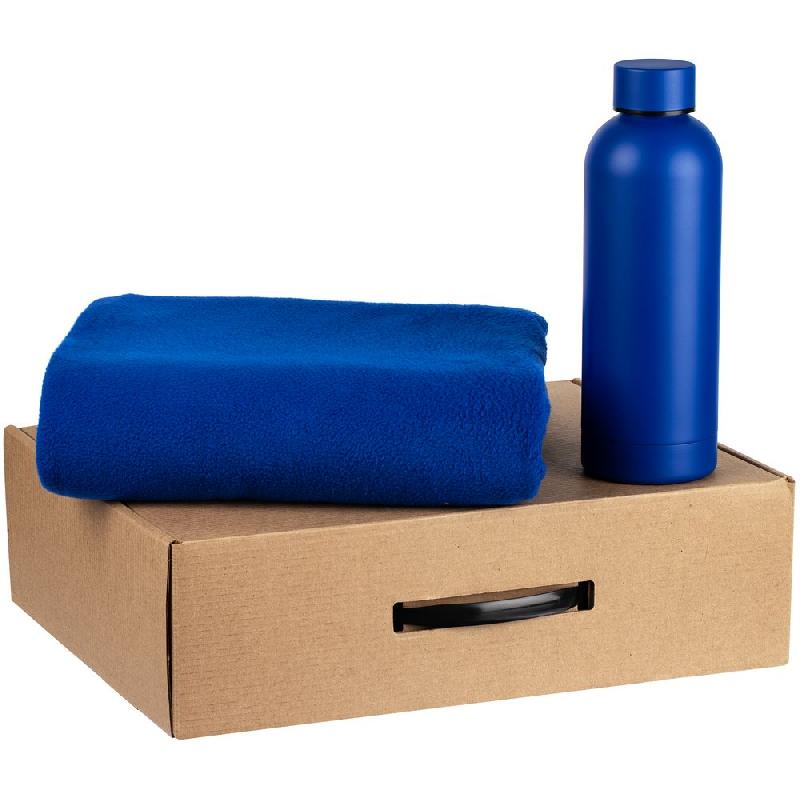 бутылка - металл, пластик; плед - флис; коробка - микрогофрокартон, пластик