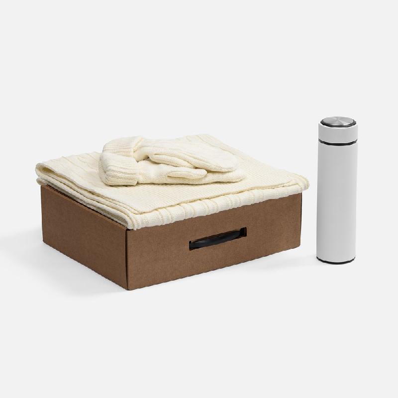 шарф, варежки - акрил 100%; термос - нержавеющая сталь, 304; покрытие софт-тач; коробка - микрогофрокартон