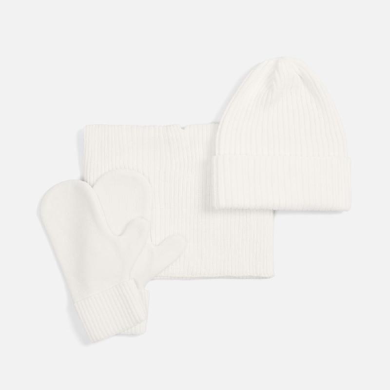 В набор входят удобный шарф с технологичным отверстием для быстрого завязывания, шапка с двойным отворотом и теплые двухслойные варежки с широкой манжетой. Все изделия связаны из акриловой пряжи, отличаются практичностью и элегантной простотой.