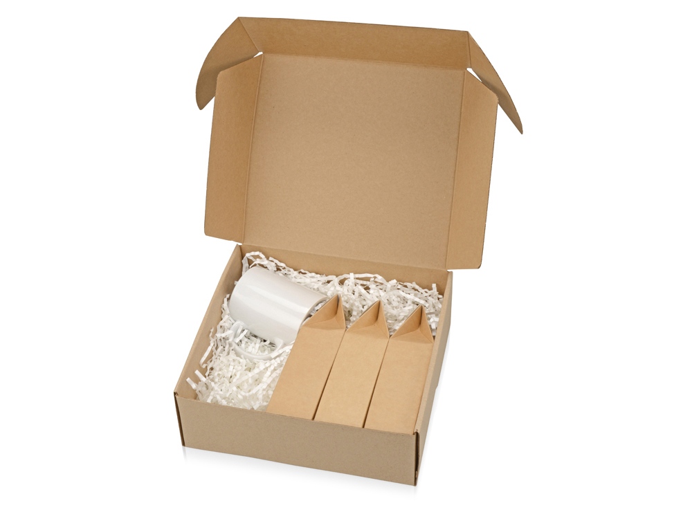 Прекрасный набор из черного, зеленого и фруктового чая придется по вкусу даже самым требовательным клиентам, а кружка Марго с вашим логотипом или промо информацией будет напоминать об успешном сотрудничестве. Набор упакован в крафтовую картонную коробку, которую также можно персонализировать.