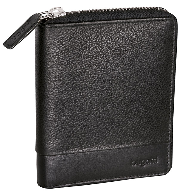 Кошелек BUGATTI Atlanta, на молнии, чёрный, натуральная воловья кожа, 10,5х2х13 см