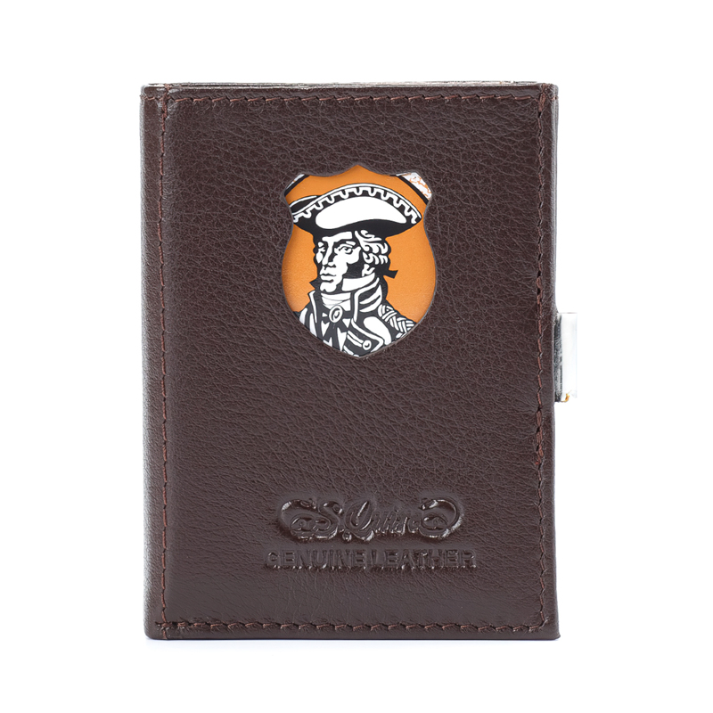 Кошелек S.Quire, натуральная кожа темно-коричневая тисненая матовая 70*93*12 мм