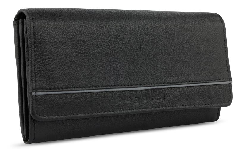 Кошелёк женский BUGATTI Banda, с защитой данных RFID, чёрный, кожа козы/полиэстер, 18,5х2,5х9,5 см