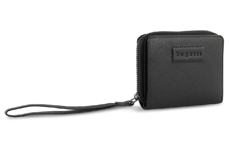 Кошелёк женский BUGATTI Elsa, с защитой данных RFID, чёрный, воловья кожа/полиэстер, 11х2,5х9 см