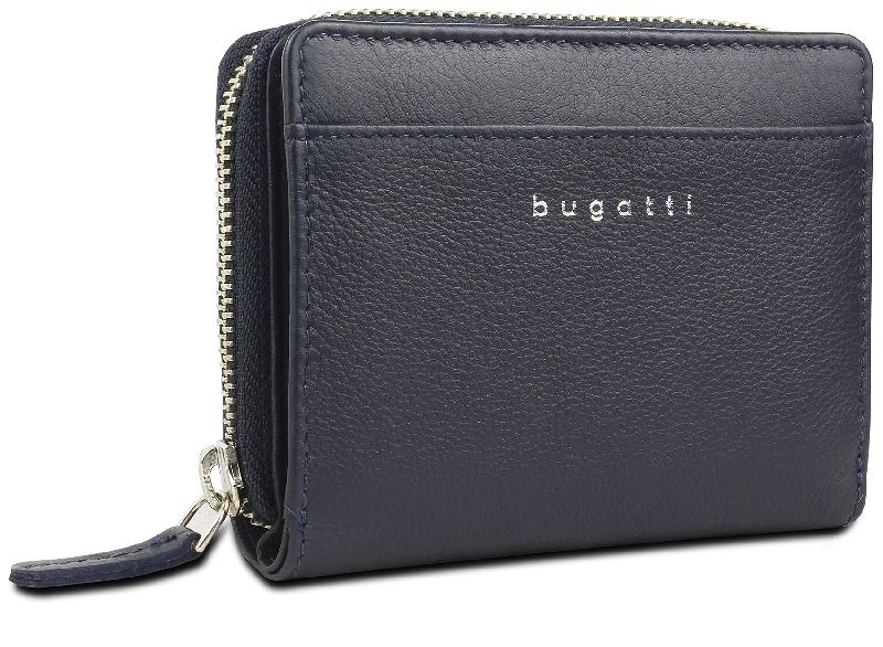 Кошелёк женский BUGATTI Lady Top, на молнии, тёмно-синий, натуральная воловья кожа, 12х2,5х9 см