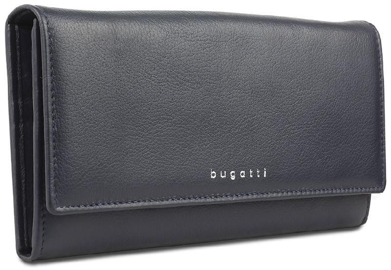 Кошелёк женский BUGATTI Lady Top, тёмно-синий, натуральная воловья кожа, 20х2,5х10,5 см