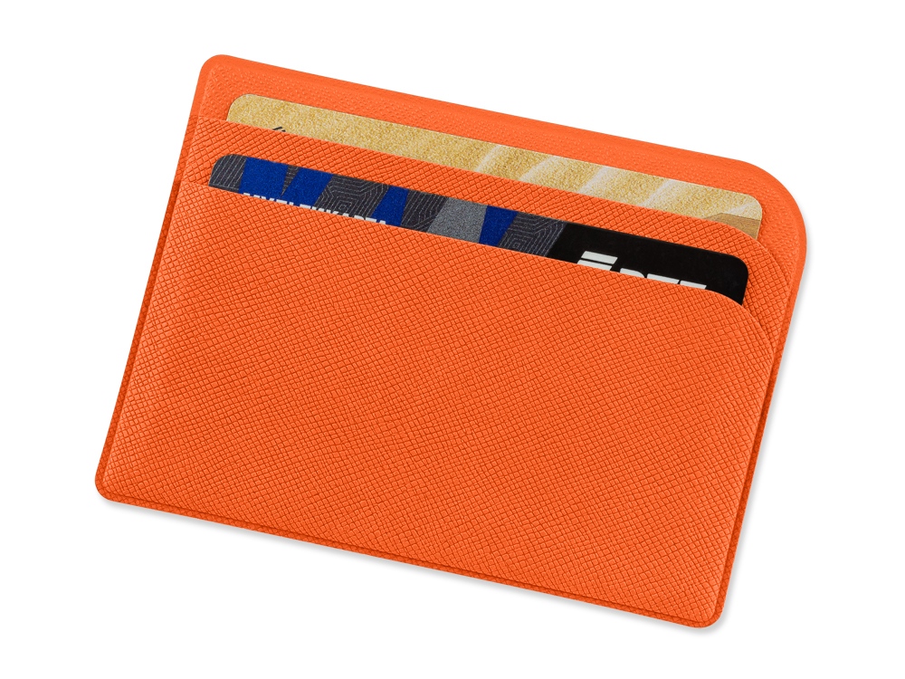 Футляр для кредитных карт с тремя карманами надежно защищает лицевую и оборотную часть карты.
