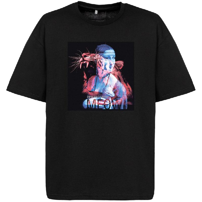 Футболка оверсайз «Дама с горностаем», черная, размер XS/S
