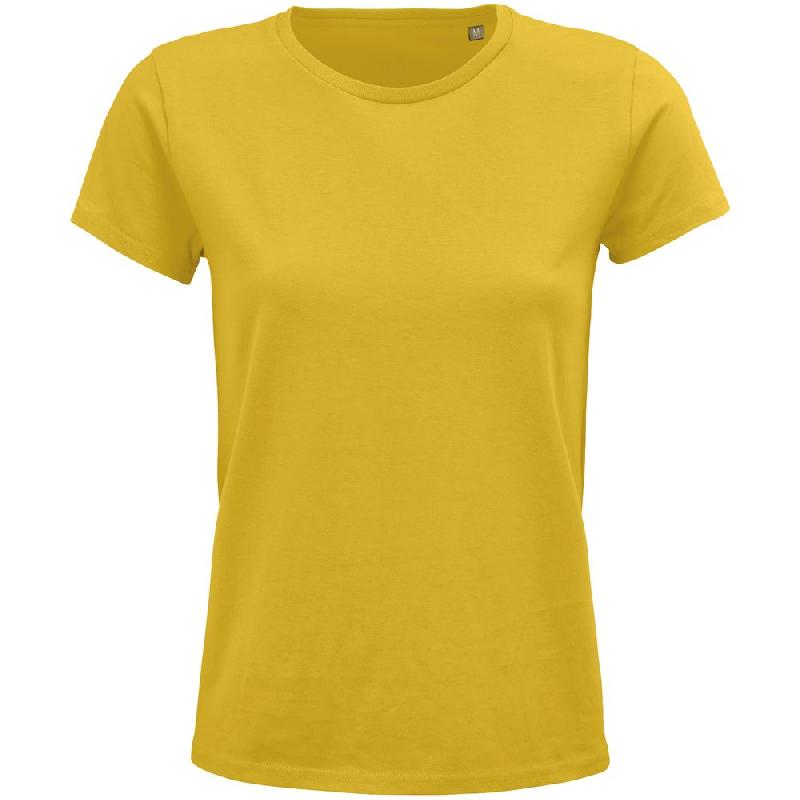 Женская бесшовная облегающая футболка из органического хлопка с круглым вырезом.