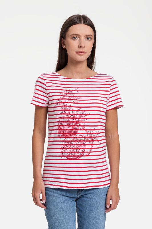 Кроеная женская футболка с короткими рукавами.