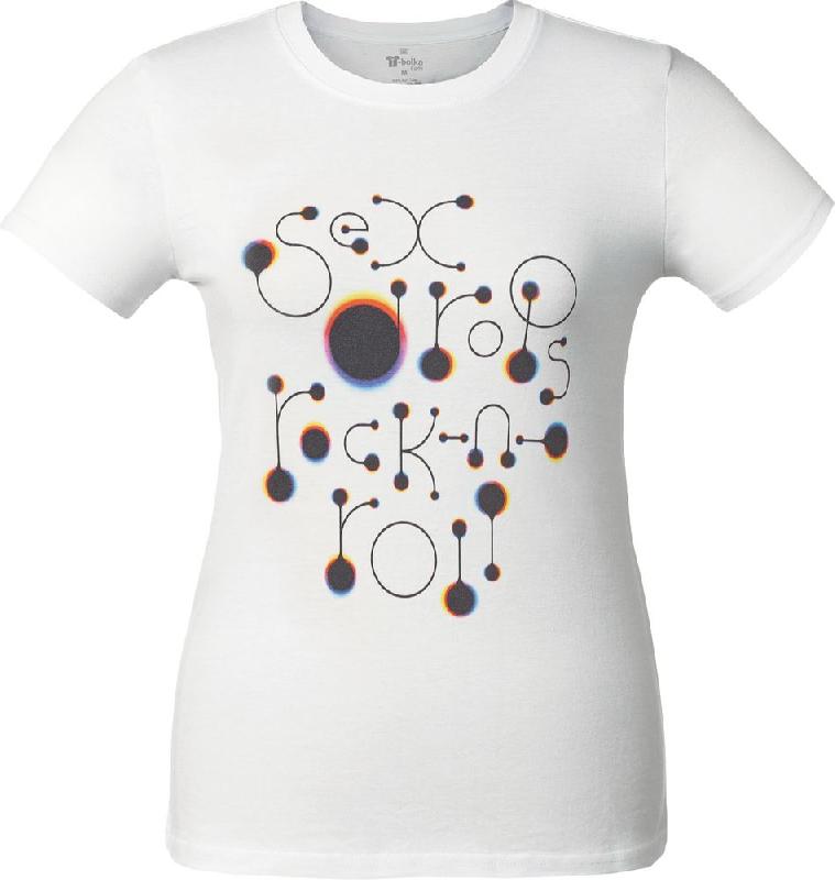 «Принтэссенция» поддерживает здоровый образ жизни: рок-н-роллить вполне можно и без запрещенных веществ! А кайф и радость жизни пусть передаются воздушно-капельным путем.Кроеная женская футболка с круглым воротом-резинкой (рибана 1x1 с лайкрой).