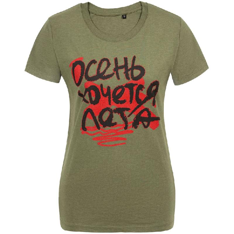 Футболка женская «Осень хочется лета», меланж хаки, размер L