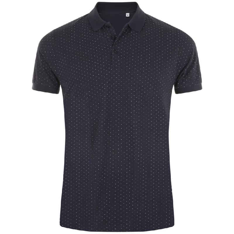 Рубашка поло приталенного силуэта с рисунком в точку. Лейбл производителя в боковом шве изнутри, в шве горловины - только бирка с размером, что позволяет вам нанести свой логотип.