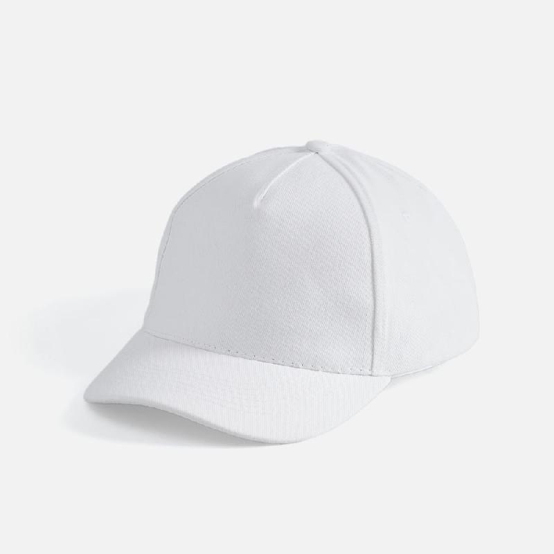 Модель бейсболки с 5-ю клиньями без лобового шва из плотного чесаного хлопка.
