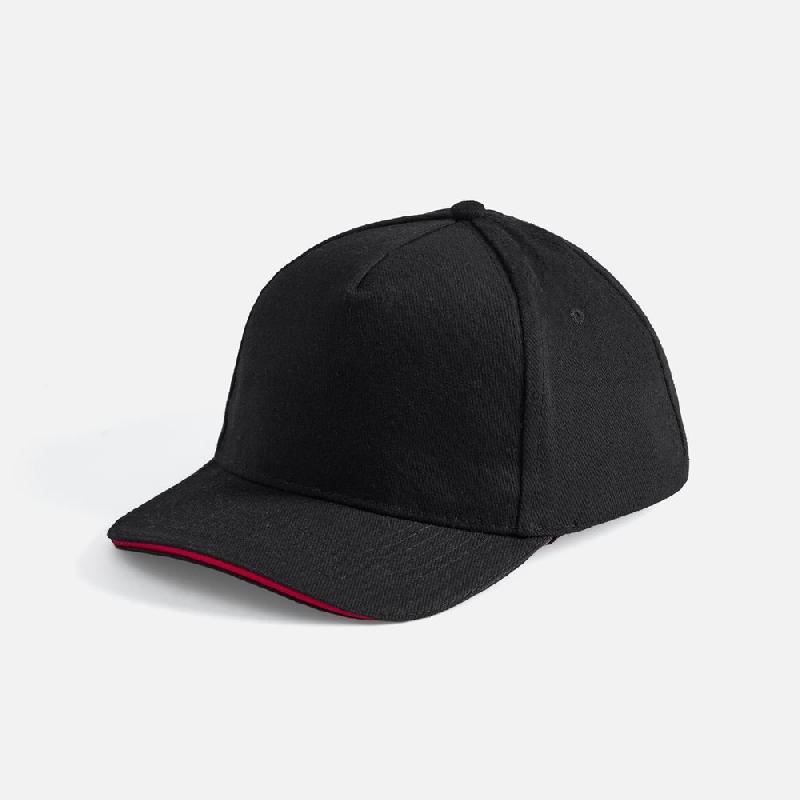 Модель бейсболки с 5-ю клиньями без лобового шва из плотного чесаного хлопка.