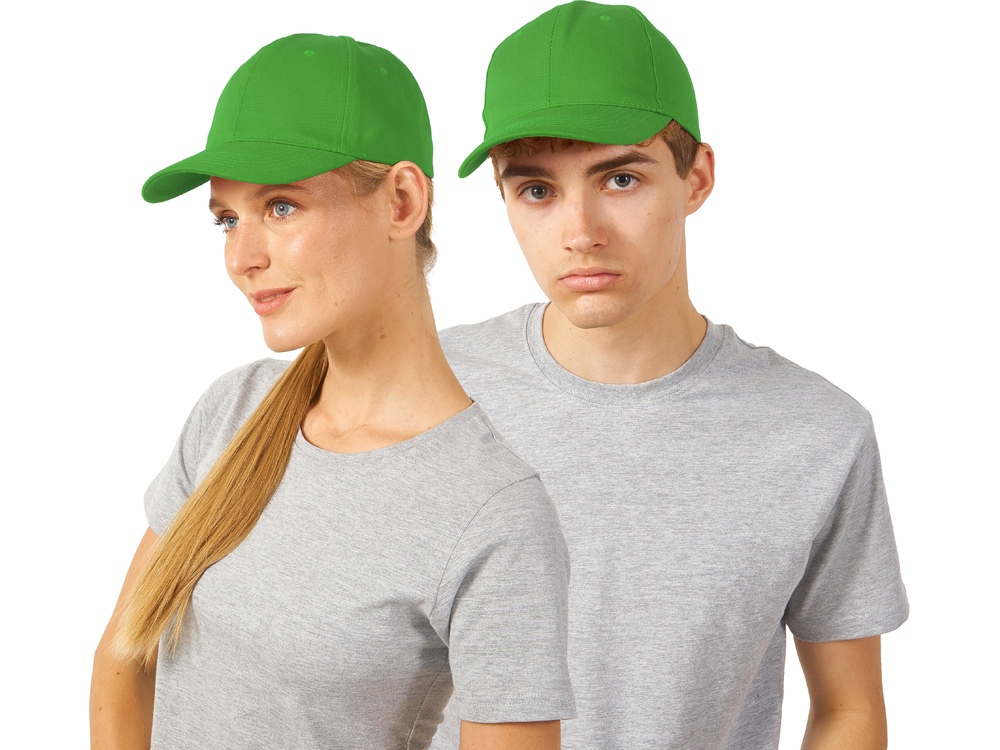 6 панельная бейсболка из переработанного полиэстера. Вышитые люверсы и застежка на липучку для большей эргономичности модели.