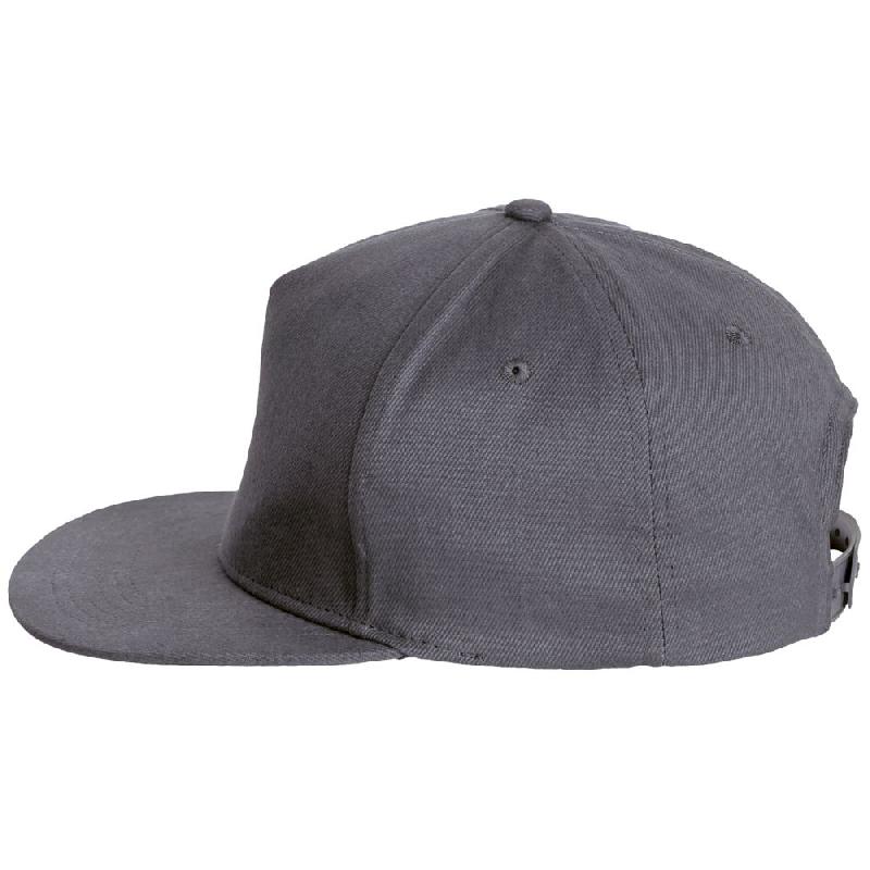 Однотонная бейсболка с 5 клиньями из материала, на ощупь напоминающего шерсть. Плоский козырек, 4 вышитых отверстия для вентиляции, регулируемая пластмассовая застежка сзади.