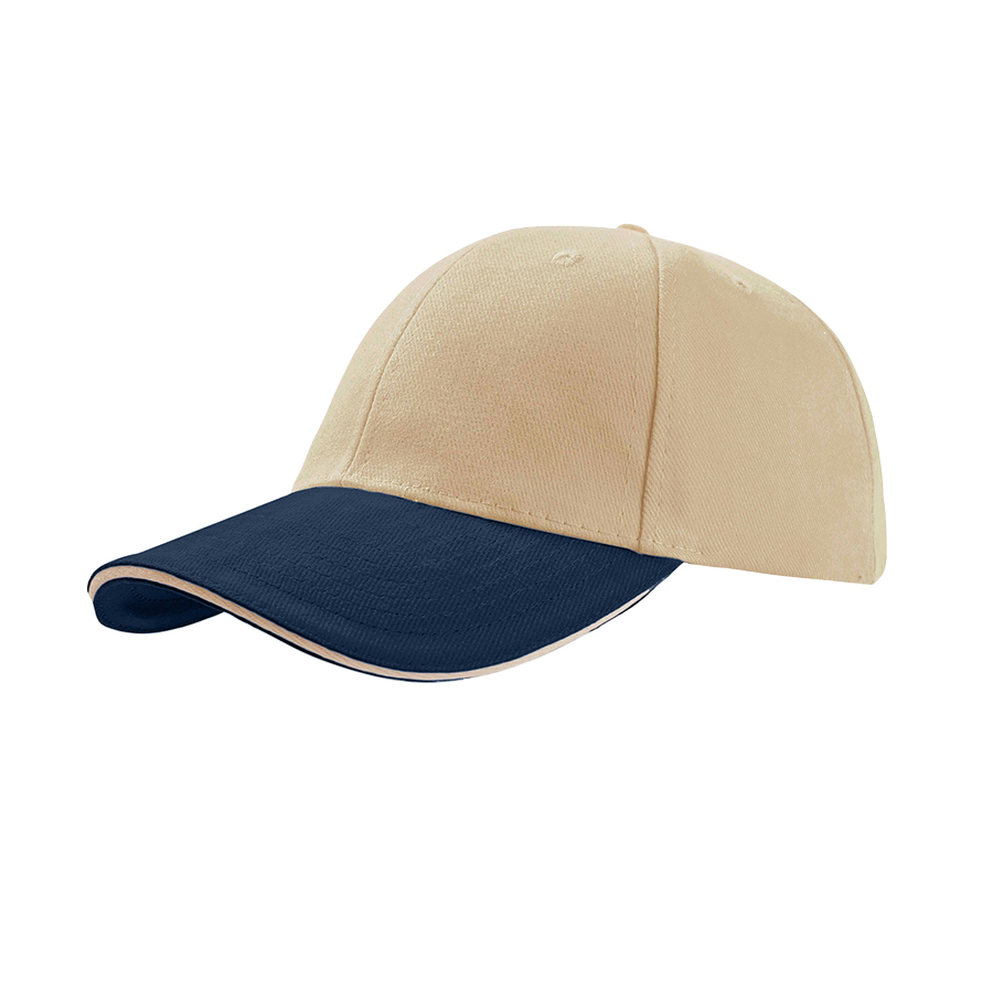 Бейсболка "LIBERTY SANDWICH",6 клиньев,сэндвич,металл.застежка,бежев. с синим,100% хлопок,250г/м2