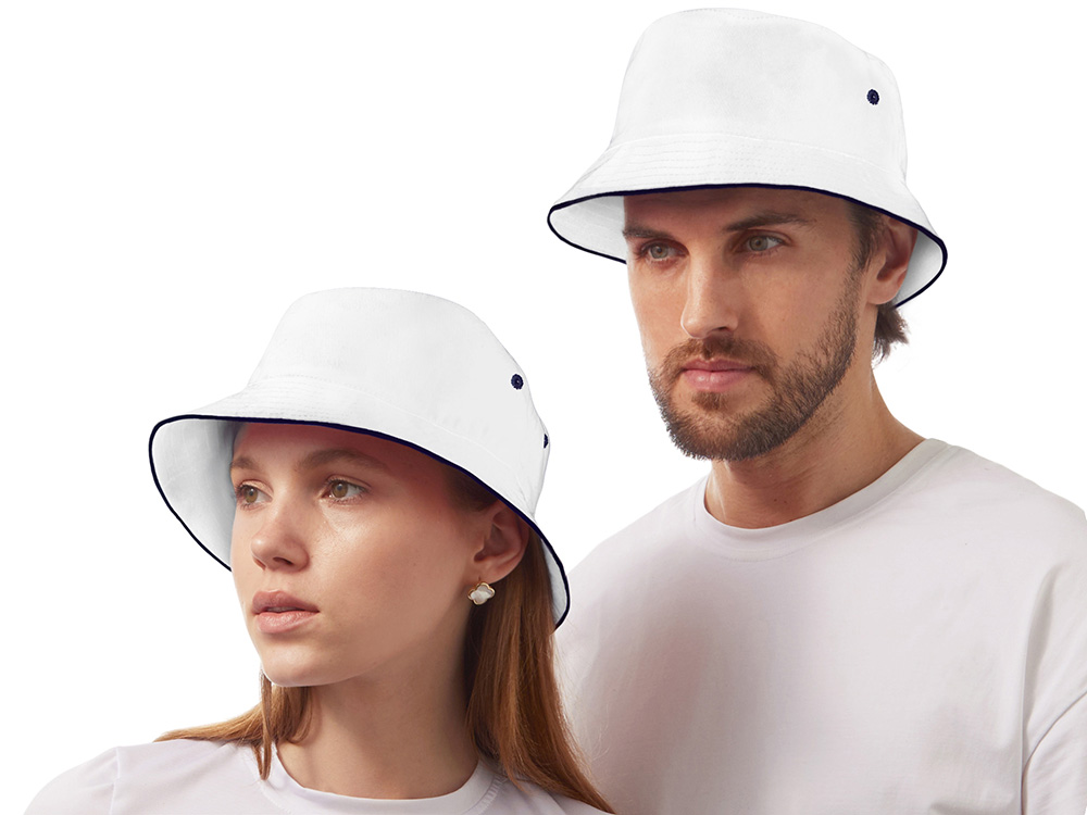 Панама из хлопкового твила с контрастным кантом и контрастными вентиляционными отверстиями.
