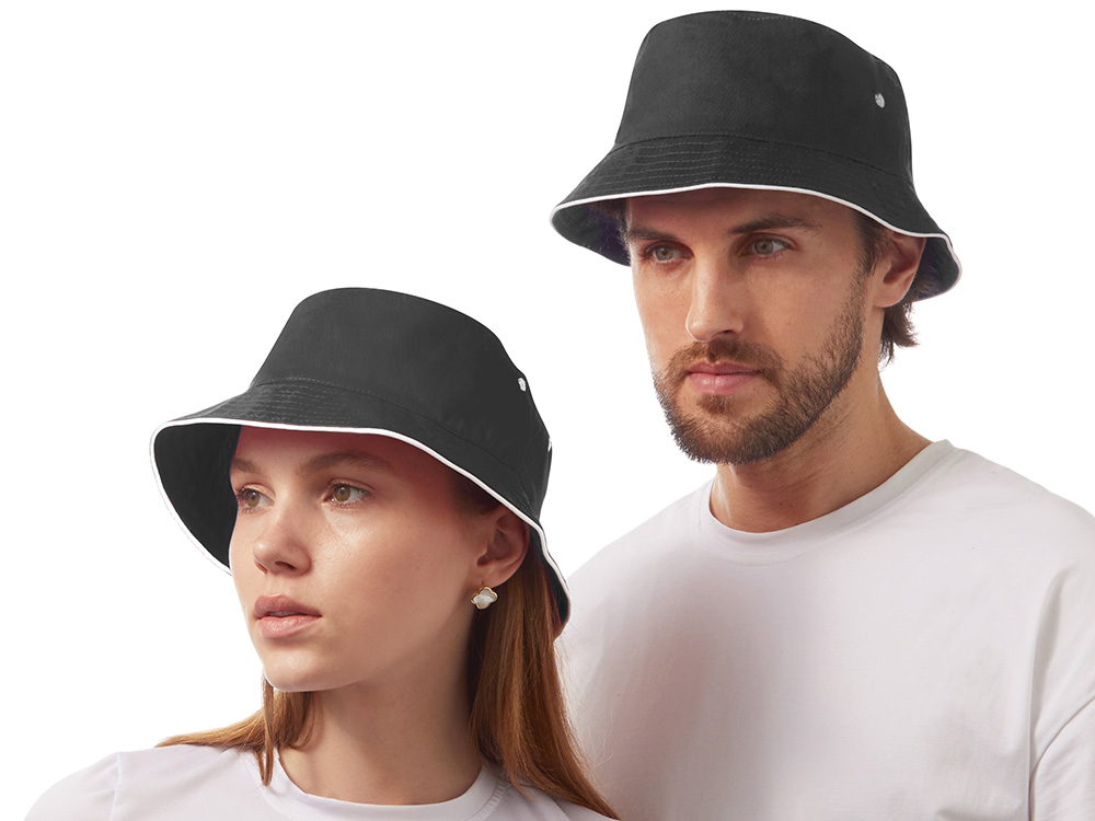 Панама из хлопкового твила с контрастным кантом и контрастными вентиляционными отверстиями.