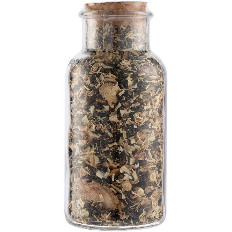 Состав: чай зеленый байховый крупнолистовой, кусочки имбиря, сок имбиря, лемонграсс.