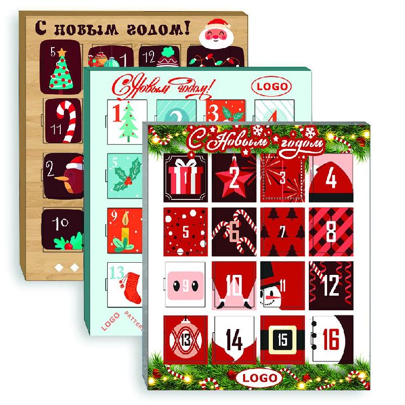 Набор из 16 плиток шоколада в коробке в виде адвент-календаря.